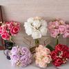 43CM 7-piece Tied Roasted Edge Rose Artificial Bouquet High-end Home Soft Decoration Floral Ornaments