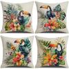 New Summer Tropical Green Plant Flamingo Imitation Hemp Pillow Case Sofa Pillow Living Room Decorative Cushion Cover