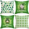 St. Patrick's Day Peach Skin Velvet Pillowcase, Green Four-leaf Clover Printed Sofa Pillow Cushion