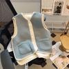 Jarní a podzimní dámská kapesní vesta kabát bez rukávů zimní bunda jednobarevné fleecové svrchní oblečení s knoflíky