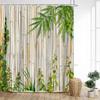 Bamboo Green Leaf Shower Curtain, Bathroom Decorative Shower Curtain, Waterproof Shower Curtain with Hooks