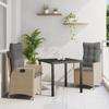 VidaXL Ensemble repas jardin 3 pièces avec coussins, table carrée moderne en poly rotin beige et chaises pour l'extérieur, 3380330