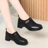 6cm Comfortable Deep Mouth Soft Leather Shoes Women Pumps 2025 Spring Med Block Heels Shoes for Office Mom Model Daily