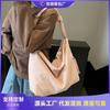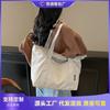 Spring and summer new tote bag lazy wind canvas bag simple double-sided bag plaid contrasting shopping bag