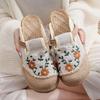 TWBEB Women Linen Canvas Slip-On Flat Shoes Comfortable Retro Loafers Ladies Casual Embroidered Sneakers Hemp Sole