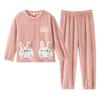 DayaEmmoTQ Cute Embroidered Flannel Long Crew Coral Cold Weather Plus Available in Three Colors for and Spring Women's Pajamas, Sleeves, Neck,