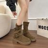 Retro two-wear locomotive boots for women's autumn and winter new belt buckle heightened small thick heel thick-soled Martin short boots