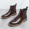 New Fashion Male Pointed Alligator Pattern Leather Brogues Ankle Boots Men Casual Luxury High Top Platform Shoes Zapatos Hombre