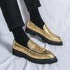 Golden Print Man Dress Shoes Pointed-toe Designer Men Business Shoes Anti-slip Platform Formal Leather Shoes zapatos de vestir