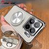 Magnetický držák otočný o 360 stupňů Nárazuvzdorné pokovené pouzdro pro iPhone 16 16E 15 14 Plus 13 12 11 Pro Max Silikonový kryt