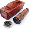 Mosazný dalekohled 40,64 cm Námořní monokulár Kukátko s koženým pouzdrem Dárek pro tátu, manžela, syna, k promoci nebo ke Dni otců.