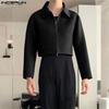 INCERUN Men Long Sleeve Open Front Stitching Short Crop Tops Shirts
