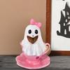 Halloween Ghost Figurine Cute Pink Ghost Holding Moon Statue Resin Ghost Sculpture Tabletop Ornament for Indoor Home Decor