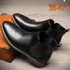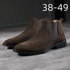 Large Size Chelsea Boots Men's Summer Breathable British Style Pointed Fur Short Boots High Top Leather Shoes Medium Top Martin Boots
