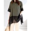 Dámská letní trička nadměrné velikosti s kulatým výstřihem v kontrastních barvách, asymetrická patchworková, ležérní s krátkým rukávem, volná střední šifonová košile, topy