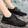 Genuine leather men's casual breathable mesh shoes Casual lace-up Hollow out shoes comfortable outdoor stroll Hot selling