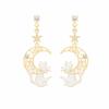 silver earrings with a cat and crescent moon choose your birthstone Women's motif, (May, emerald)
