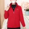 Mid Age Polar Fleece Jacket Women Stand Collar Winter Plush Lined Thick Warm Plus Size Womens Clothing Mom Wear Cardigan Hoodie
