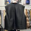 Women Design Simple Commuter Patchwork Vest PU Leather Streetwear Sleeveless Button Jacket