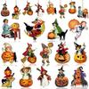 Halloweenská dřevěná ozdoba na stromek Vintage závěsná dekorace Dýně Čarodějnice Černá kočka Dřevěné výřezy pro Halloweenskou domácí párty dekoraci