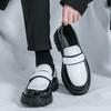 Fashion Slip on Thick soled men's leather shoes Fashion casual style Office and leisure work Outdoor trendy shoes 38-46 Black white