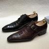 Fashion Men's Winter Genuine Leather Dress Shoes Lace-Up Formal Oxfords with Buckle for Wedding Business Office Black/Brown