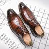 Fashion Fashion Men's Black Pointed Lace Up Patent Leather Oxfords Flats Casual Shoes Male Homecoming Wedding Dress Zapatillas Hombre