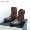 Fashion Golden Sapling Chelsea Boots Elegant Business Shoes for Men Fashion Patchwork Leather Flats Casual Men's Boot Social Male Shoe