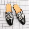 Fashion Men's Summer Snake Print Large Size Loafers Slip-On Mule Shoes Breathable Casual Leather Sandals Comfortable Flats Slippers