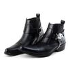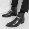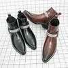 Fashion Leisure Walk Mens Chelsea Boots Handmade High Top Men Shoes Male Leather Ankle Boots Business Dress Shoes New Metal Buckle Botas