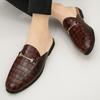 Fashion Summer New Mens Half Slippers Loafers Metal Buckle Patent Leather No Follow-up Breathable Brown Black Daily Commute Casual Shoes