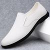 Fashion New flat bottomed men's leather shoes Comfortable and casual style Daily outdoor Adult office Black and white shoes Slip on