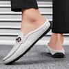 Fashion Men's Breathable Muller Shoes Hollow Out Genuine Leather Slip-On Walking Shoes Fashion Casual Flats Non-Slip Mens Slip on Shoes