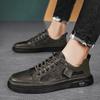 Fashion Spring Men's New Breathable and Anti Slip Trend Versatile Black Leather Shoes Casual Board Shoes
