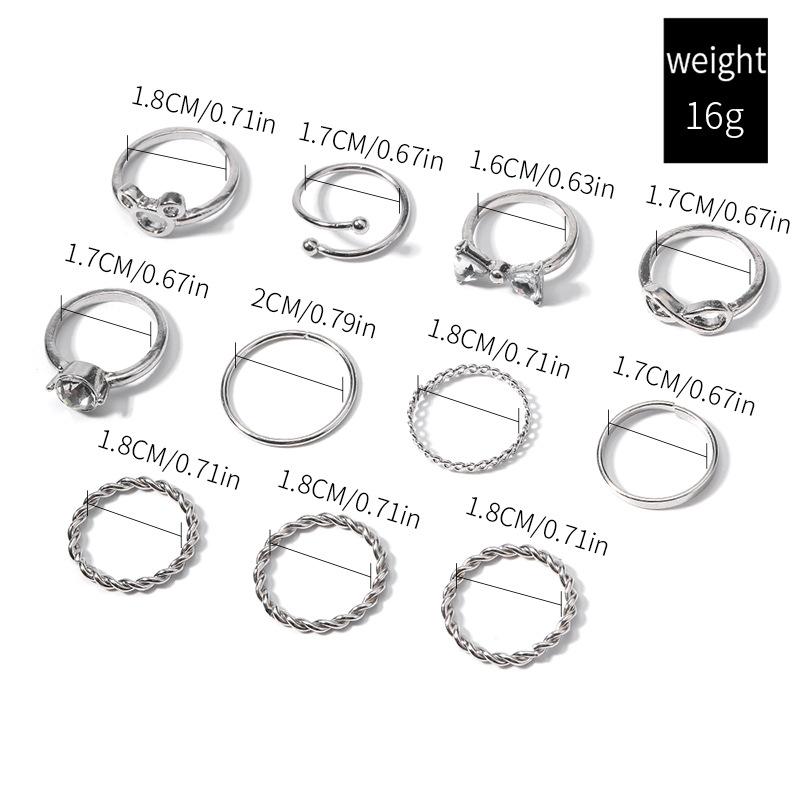 Wind Ring Women's Niche Premium Diamond Cartoon Ring Set Bow Ring Silver