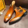 Men's high-top shoes carved cowhide men's shoes small square head Chelsea men's boots footwear