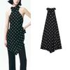 Spring and Summer New Women clothes Bowknot Decoration Asymmetric Hem Polka Dot Hanging Collar Dress 5289042