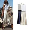 Spring New Arrival French Style Design Niche Style round Neck Sleeveless A- line Skirt Mid-Length Patchwork Dress 0085310