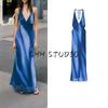 Summer Women's Clothing French Open Back Design Bowknot Decoration Hanging Collar Print Long Dress 3324309