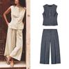 Spring and Summer New Linen Blend Pleated Vest 2746785 High Waist Wide Leg Casual Trousers 2834785