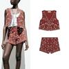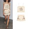 Cut Out Embroider Laminated Decoration Sleeveless Tops 3666099 High Waist A- line Casual Shorts 8073286