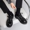 Niche soft leather big head Derby shoes men's business black round head platform small leather shoes heightening versatile commuter trendy shoes