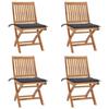 Chaises pliables de jardin avec coussins lot de 4 Teck solide