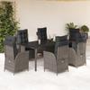 Ensemble à manger d'extérieur et coussins 7 pcs résine tressée