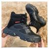 Fashion Waterproof Work Boots Men Steel Toe Boots Black Leather Safety Shoes High Top Winter Working Shoes Security Protective Boot