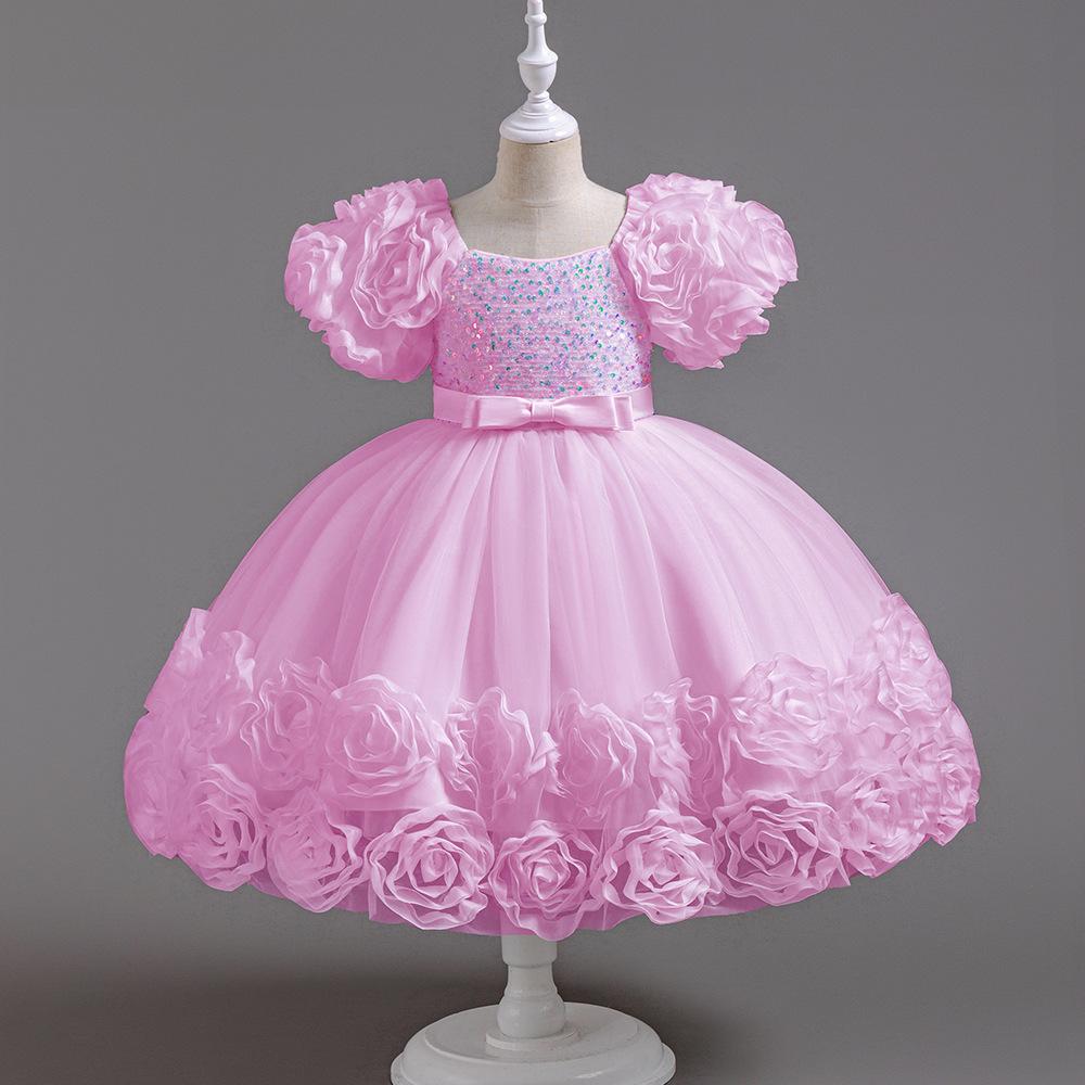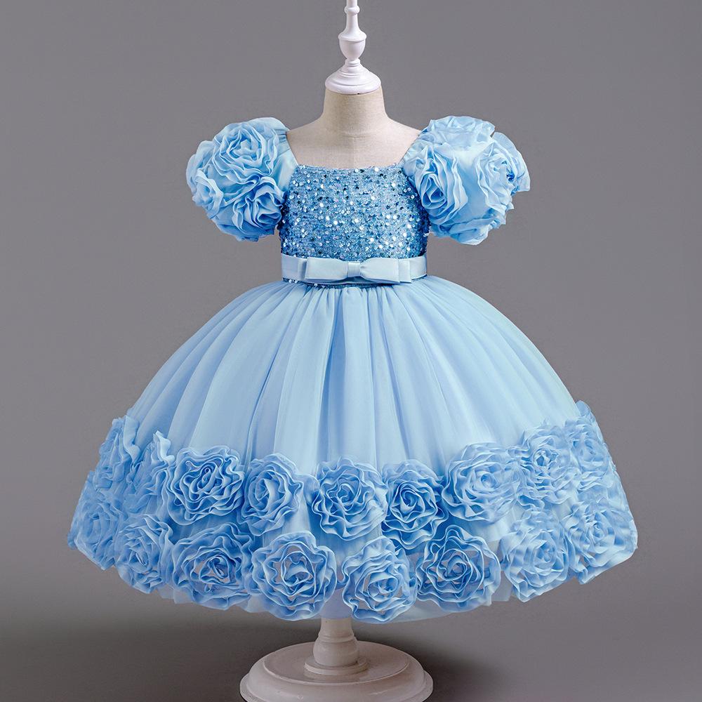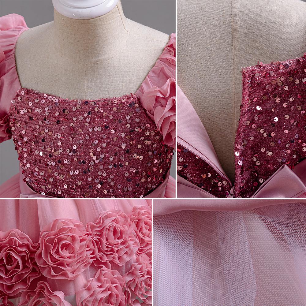 High-End Princess Sequin Puff Skirt Dress for Girls
