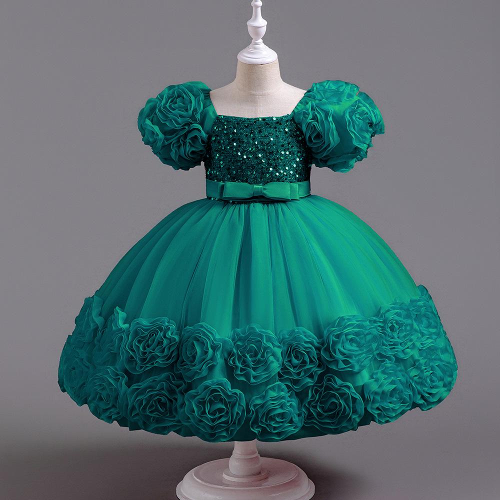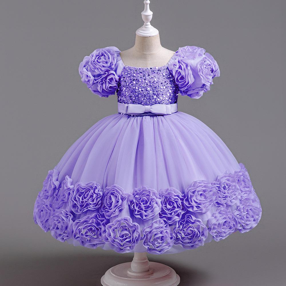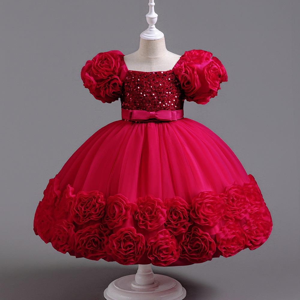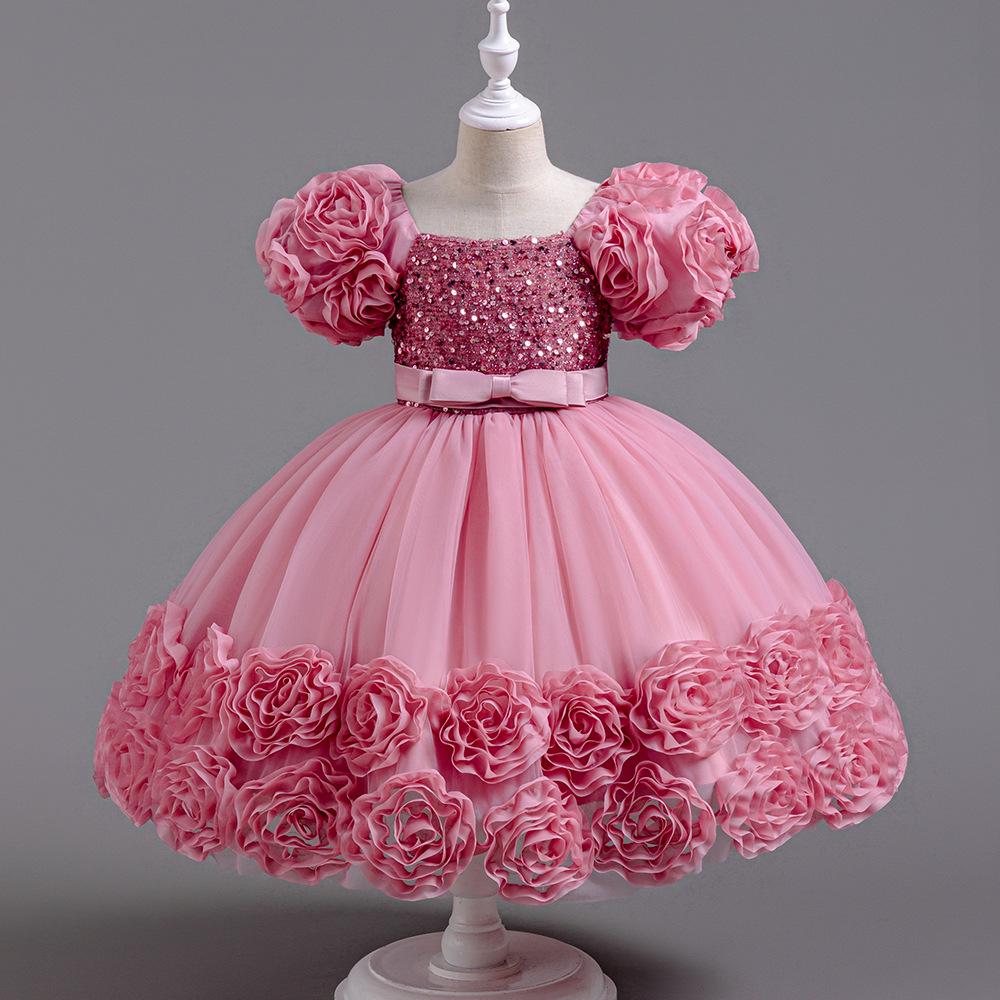High-End Princess Sequin Puff Skirt Dress for Girls