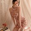 Sex underwear, uniform, pure desire retro printing hip-wrapped cheongsam set, temptation to hang the neck to avoid showing the chest