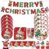 Retro Christmas Party Disposable Tableware and Decorations with Reindeer, Santa Claus, and Snowman Theme