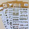 Retro Gold Christmas Stickers: 4 Designs - Cat, Birdcage, English Letters, Garden.